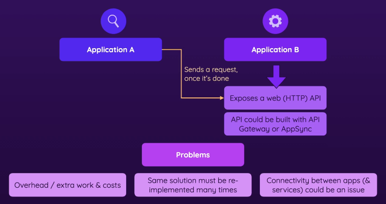 - You can have an API (could be built with API Gateway or AppSync), and App A could send a request to this API once it’s done crawling