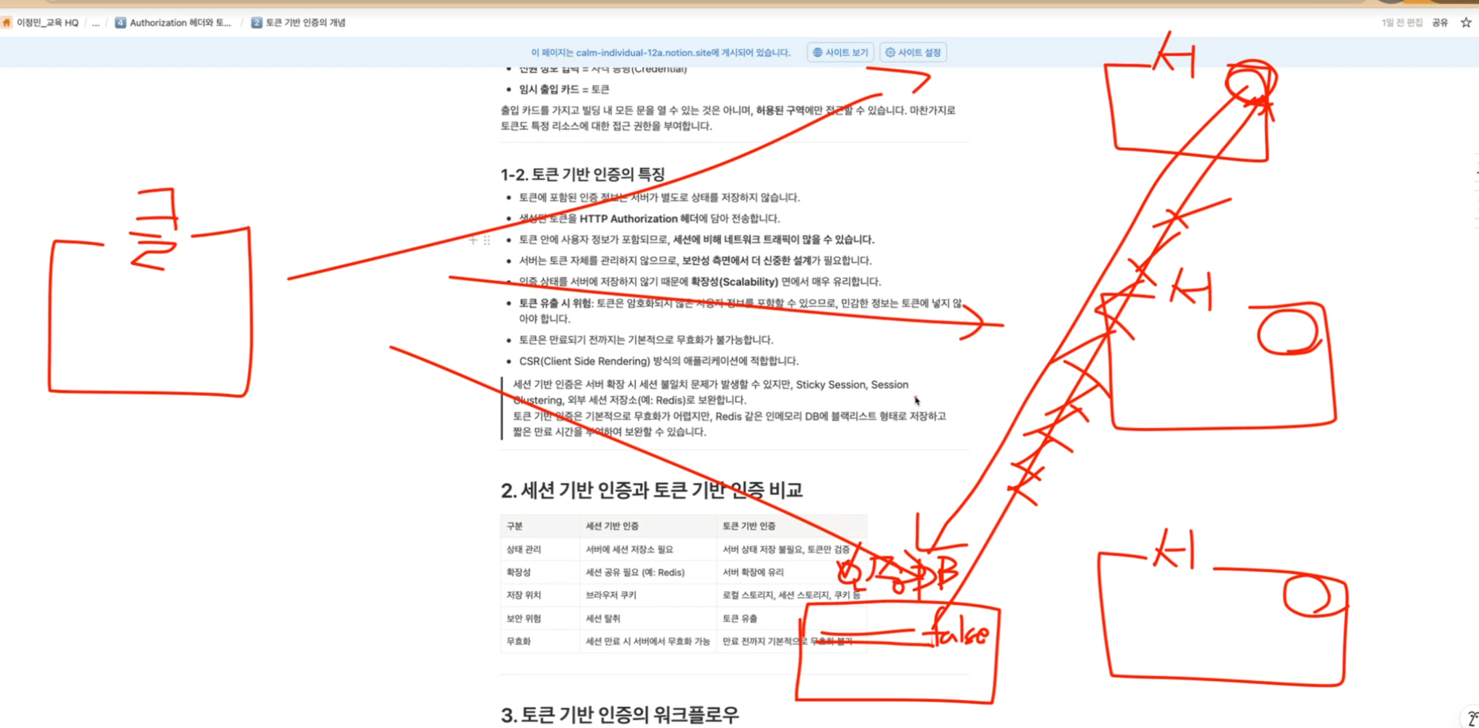 - 그래서 글로벌 세션 (인증 서버)를 따로 만들 수 있지만, 그러면 부하가 다 거기로 몰림