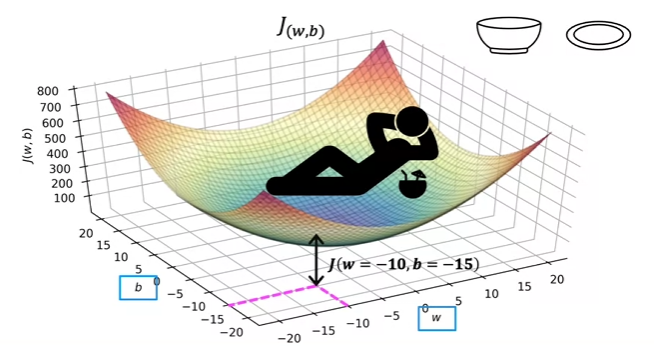 • As you vary the parameters in the cost function ( and ), you get different values in the surface function!