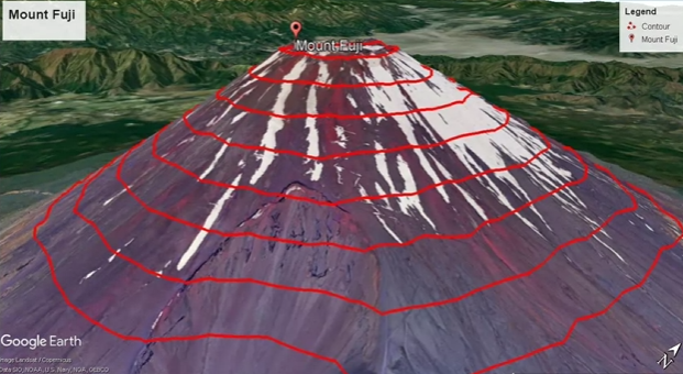 • A topological map shows high different mountains are. The contours are basically the horizontal slices of the mountain