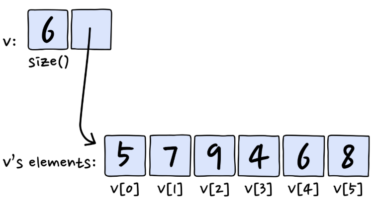 [! Size of vector] <std::vector> not only stores the elements; it also stores the size of the vector: