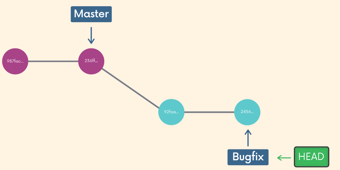 - When you make a new commit on the current branch, the branch pointer moves forward to the new commit, and HEAD moves along with it (since it’s pointing to the branch).