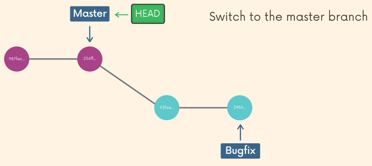 - While it might seem like you’re working with a copy of your repository when you switch branches, what’s really happening is that Git is changing which commit your HEAD is pointing to and updating your working directory to match that commit.