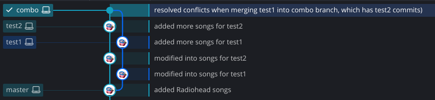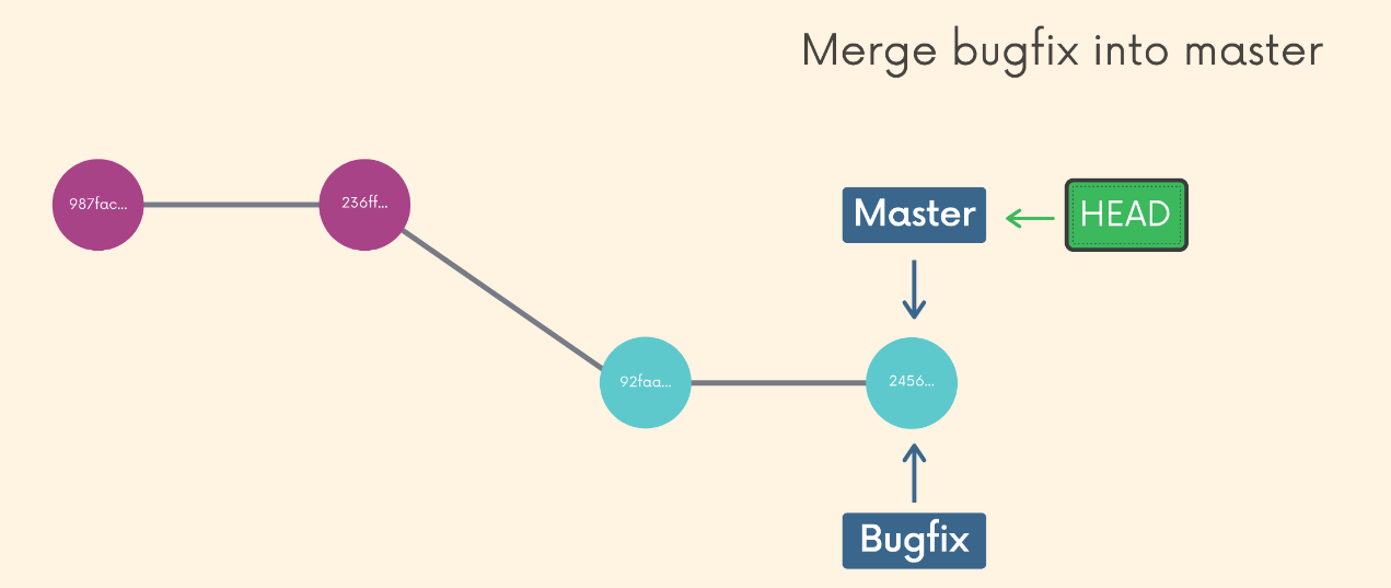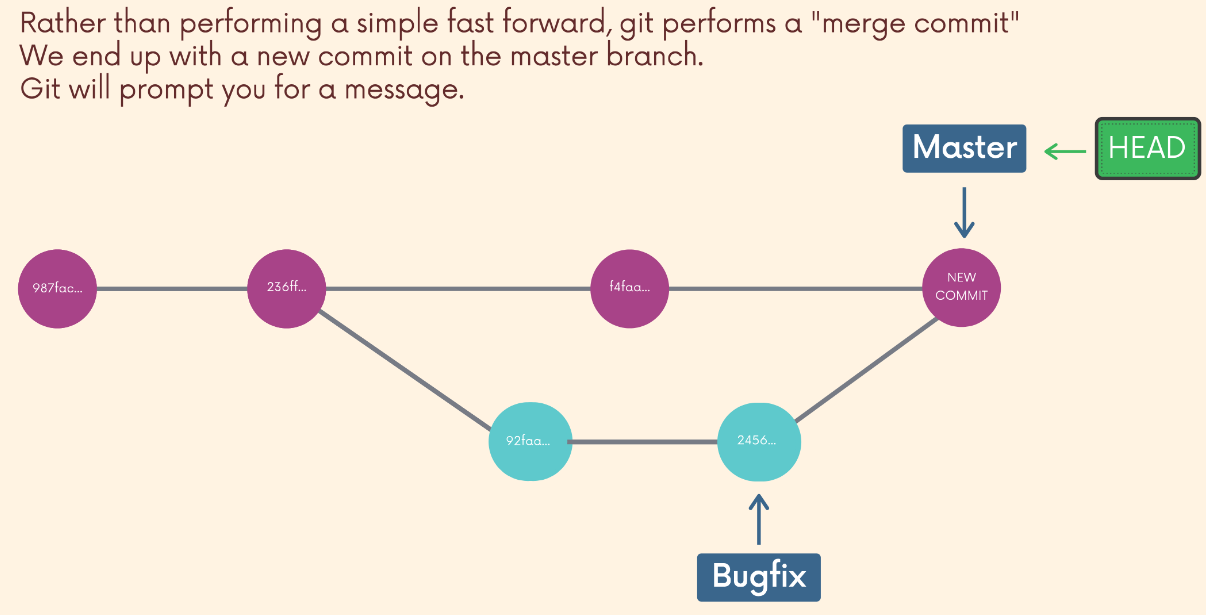 masterjust “fast forwarded” a couple of commits; there wasn’t additional work on themasterbranch- We just move the pointer forward, so we don’t need a new commit