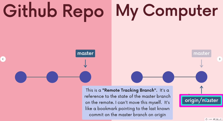 masterbranch: When you clone a repo, whatever the repo has it’s default branch, that’s what we will start with (in this casemaster).- Remote tracking branch