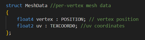 • struct MeshData → A structure that holds data for each vertex.