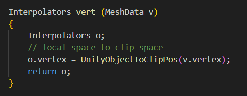 float4 vertex : SV_POSITION; // clip space position