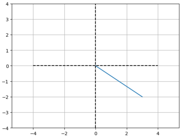 # This effectively draws a line from the origin [0, 0] to the point [3, -2]