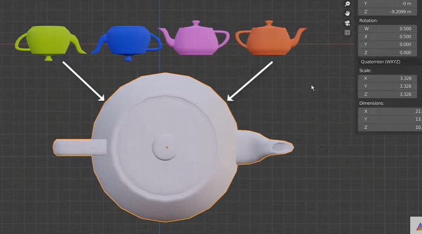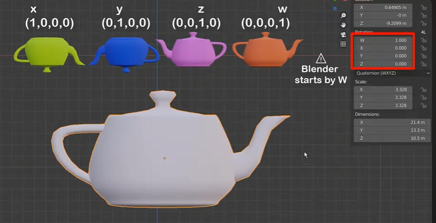 - The Quaternion values - the underlying value which Unity stores the actual rotation of GameObjects