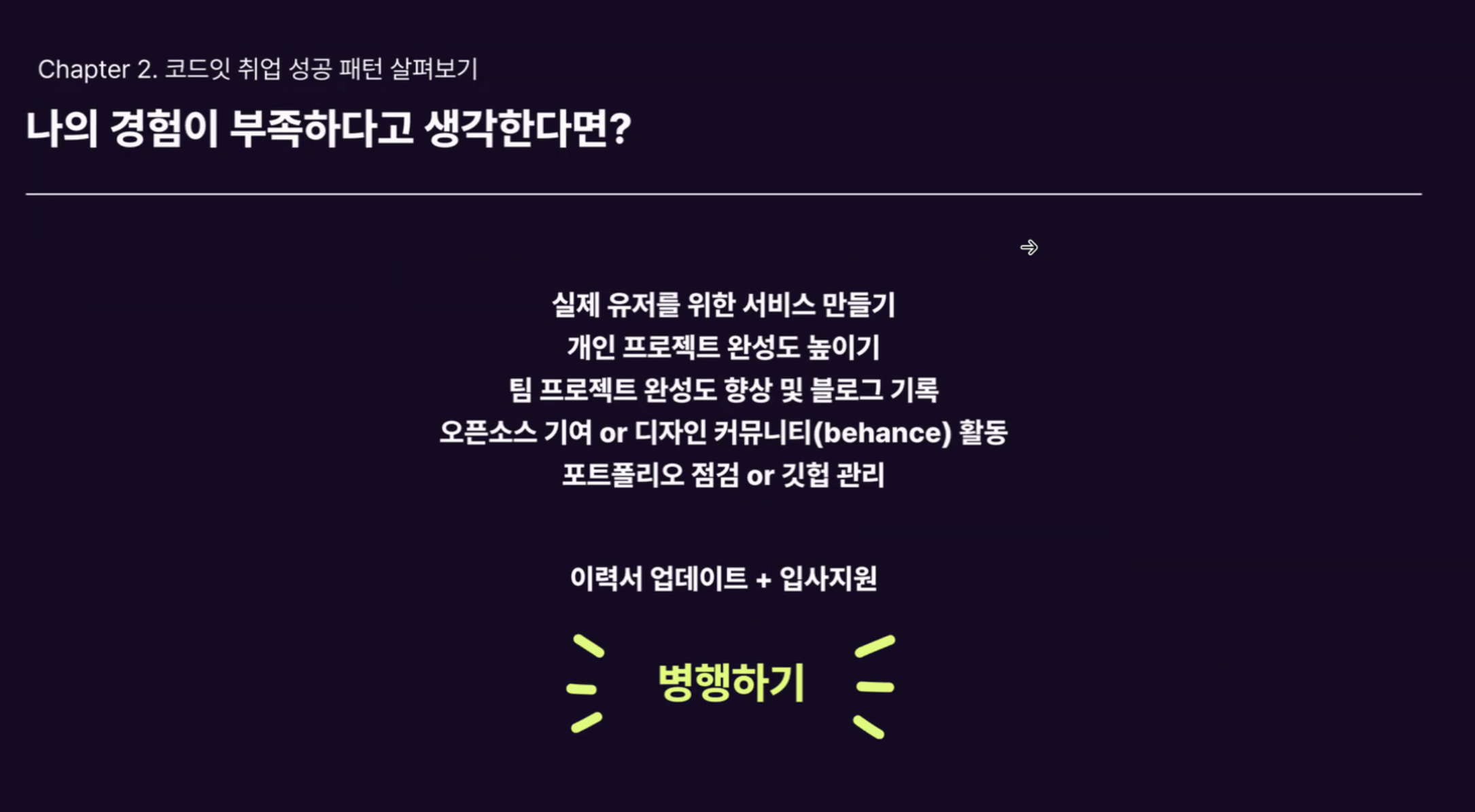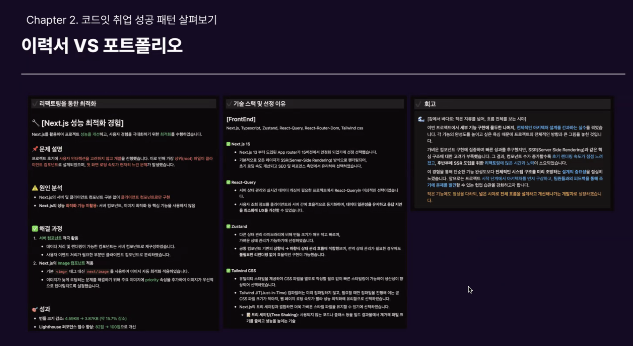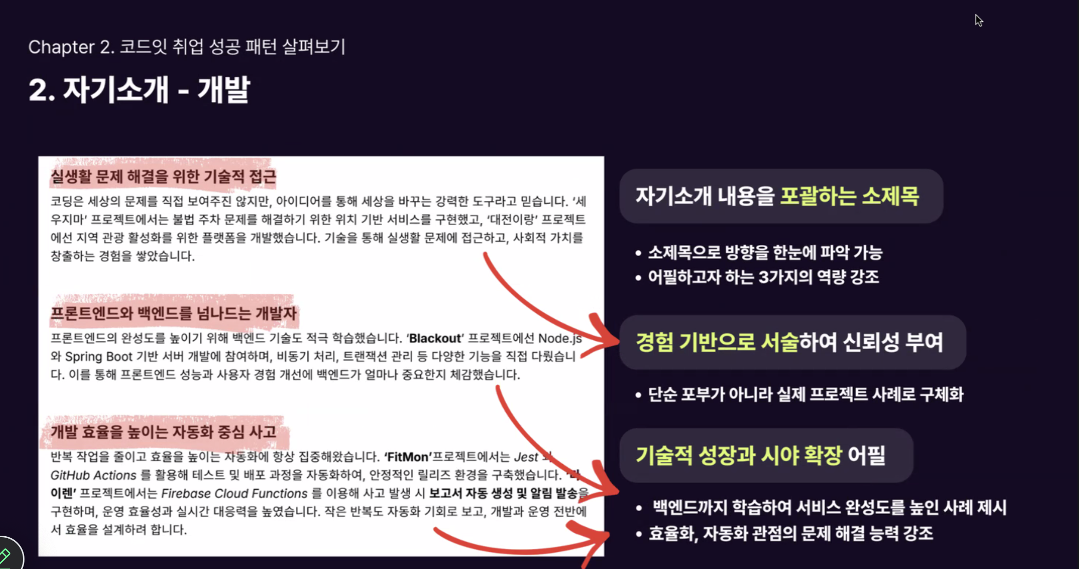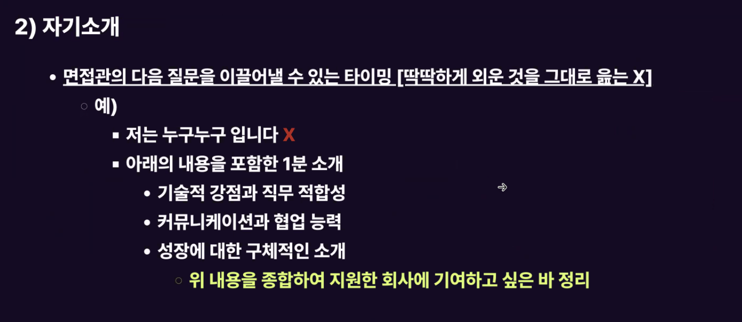 - 많이 배우겠다 … 이런게 아니라 함께 일하고 싶다>>라는 느낌을 주는 방향으로 가야함