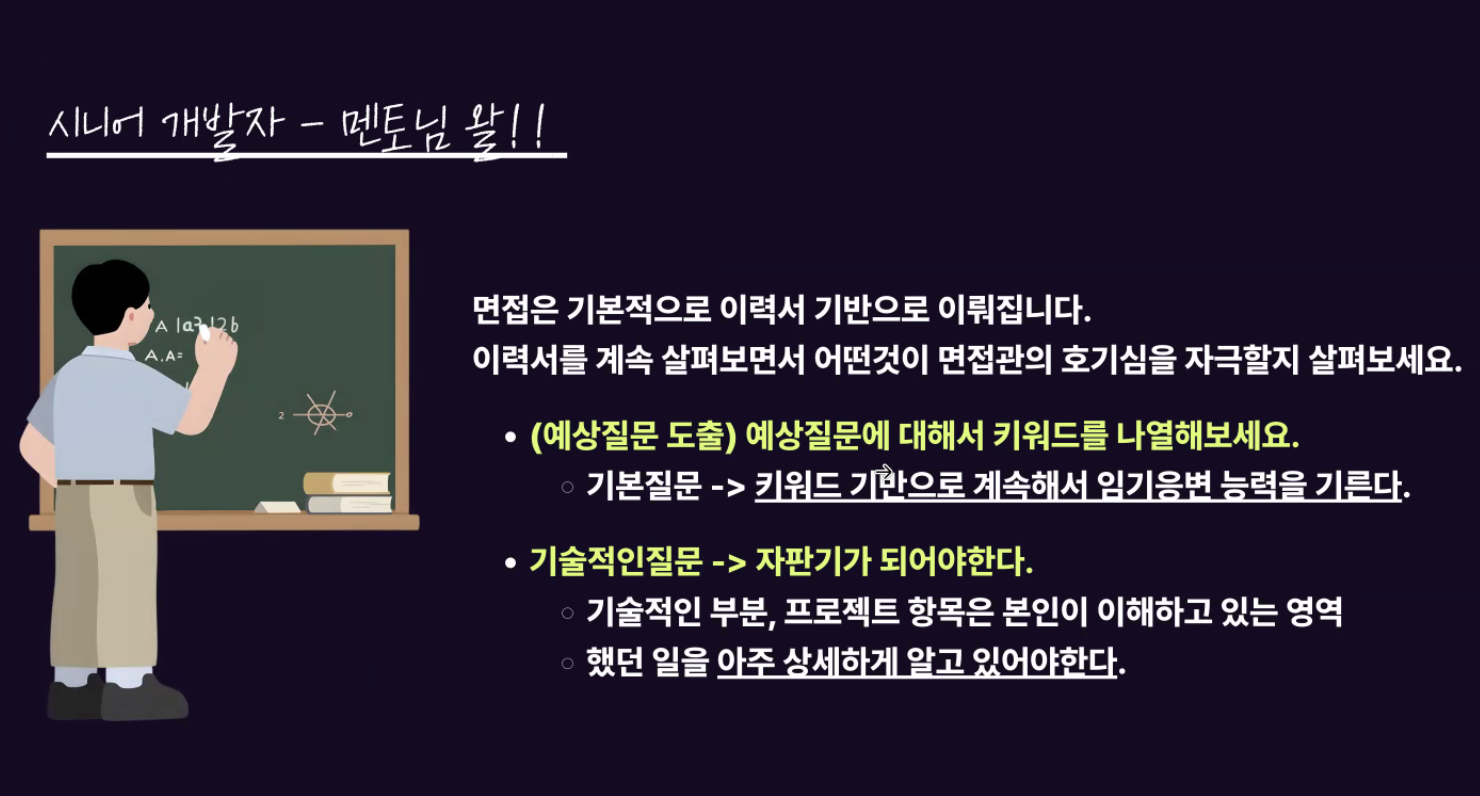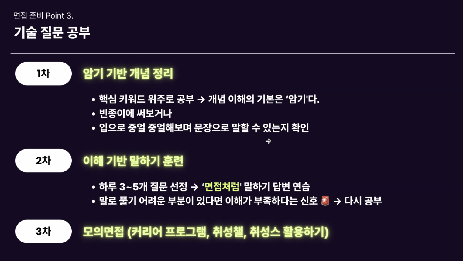 - 서류 합격하고 나서 그 다음에 면접 연습하면 이미 늦었음 (시간이 늦음)