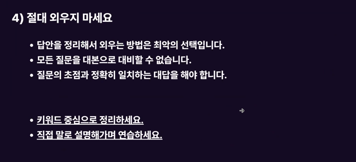 - 예상하지 못했던 질문은 무엇이었는지 적어두고 보완하는 과정 필요