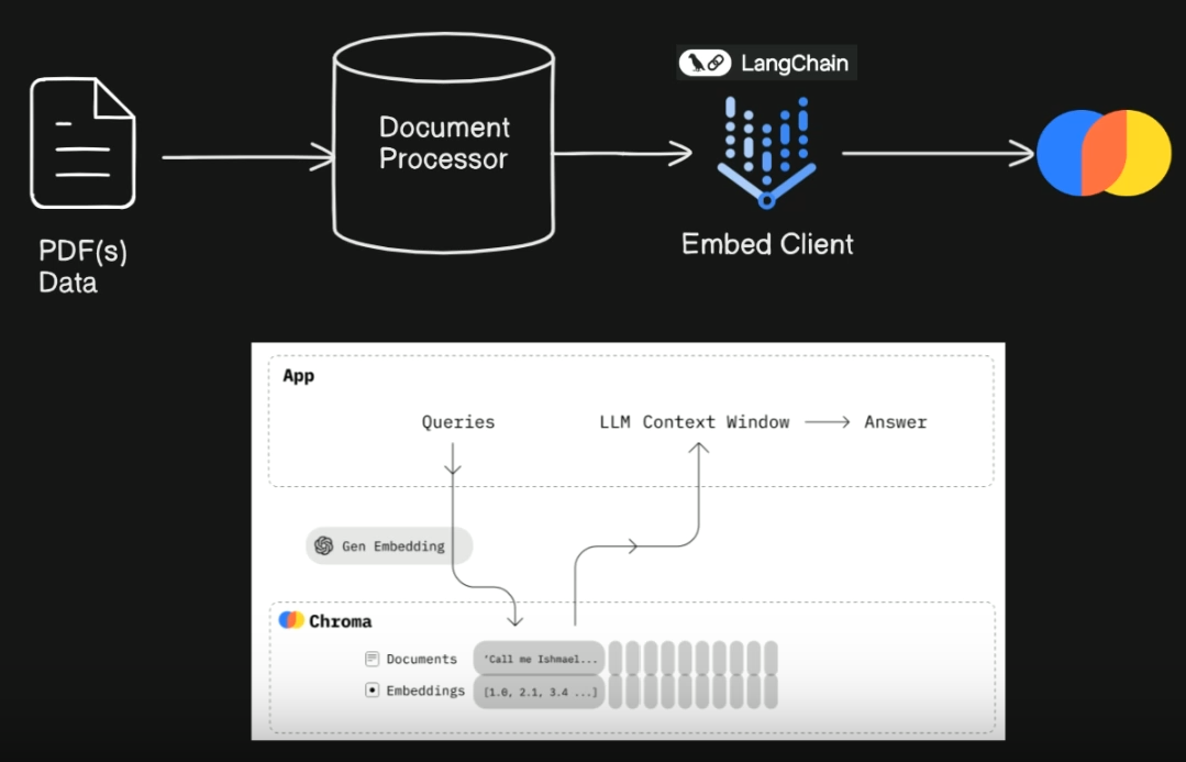 - We index and store all vectors(Embeddings) and their metadata in ChromaDB database, where we can query and ask questions