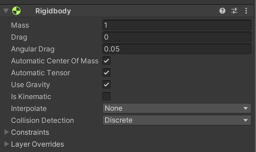 - Adding a rigidbody to an object enables Unity’s physics engine to control the movement and collisions of that object.