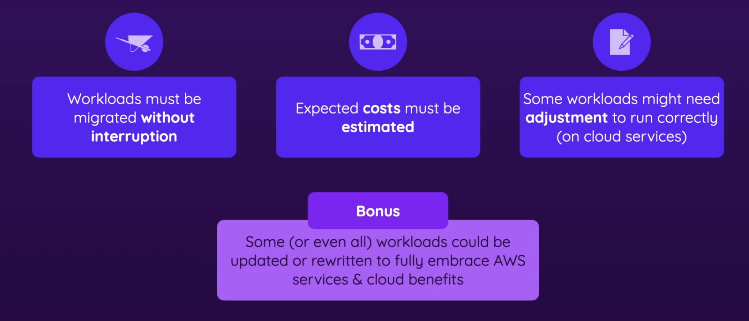 - Some (or even all) workloads could be updated/rewritten to fully embrace AWS services and cloud benefits